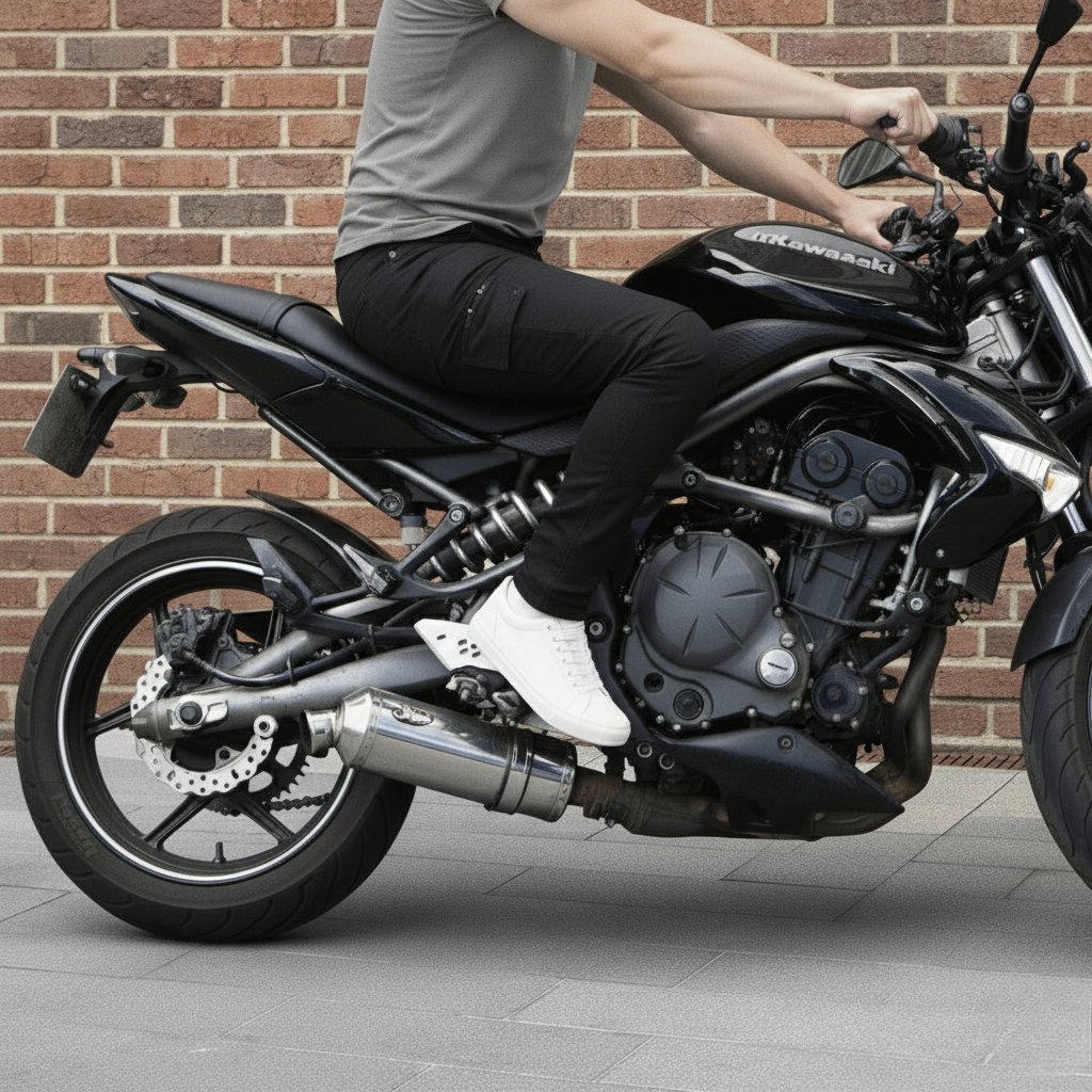 Engineered with a durable stretch-fit denim blend, Protecmate™ offers unmatched mobility whether you're leaning into a curve or walking into work. The fabric stretches naturally with your movement, never binding or bunching.
